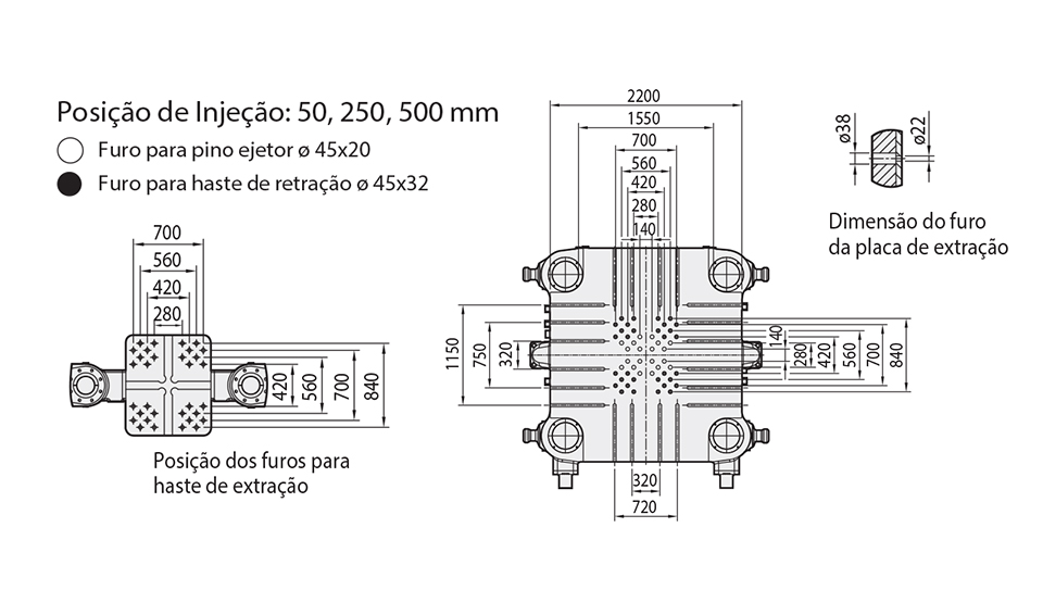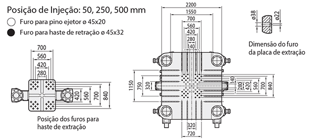 Penetração do Pistão de Injeção: 550 mm